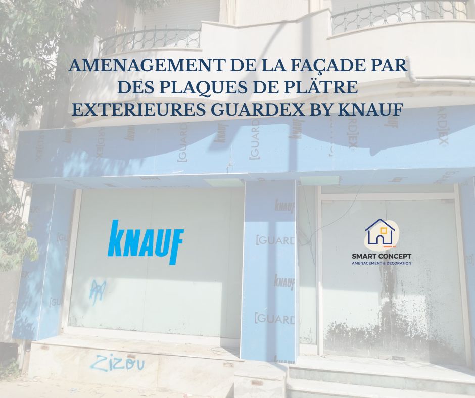 Les plaques GUARDEX, reconnues pour leur résistance à l’humidité, aux moisissures et au feu, offrent une solution durable et performante pour les revêtements extérieurs. Elles ont été fixées sur une ossature métallique galvanisée, avec un traitement des joints et des fixations garantissant une étanchéité parfaite et une finition uniforme.